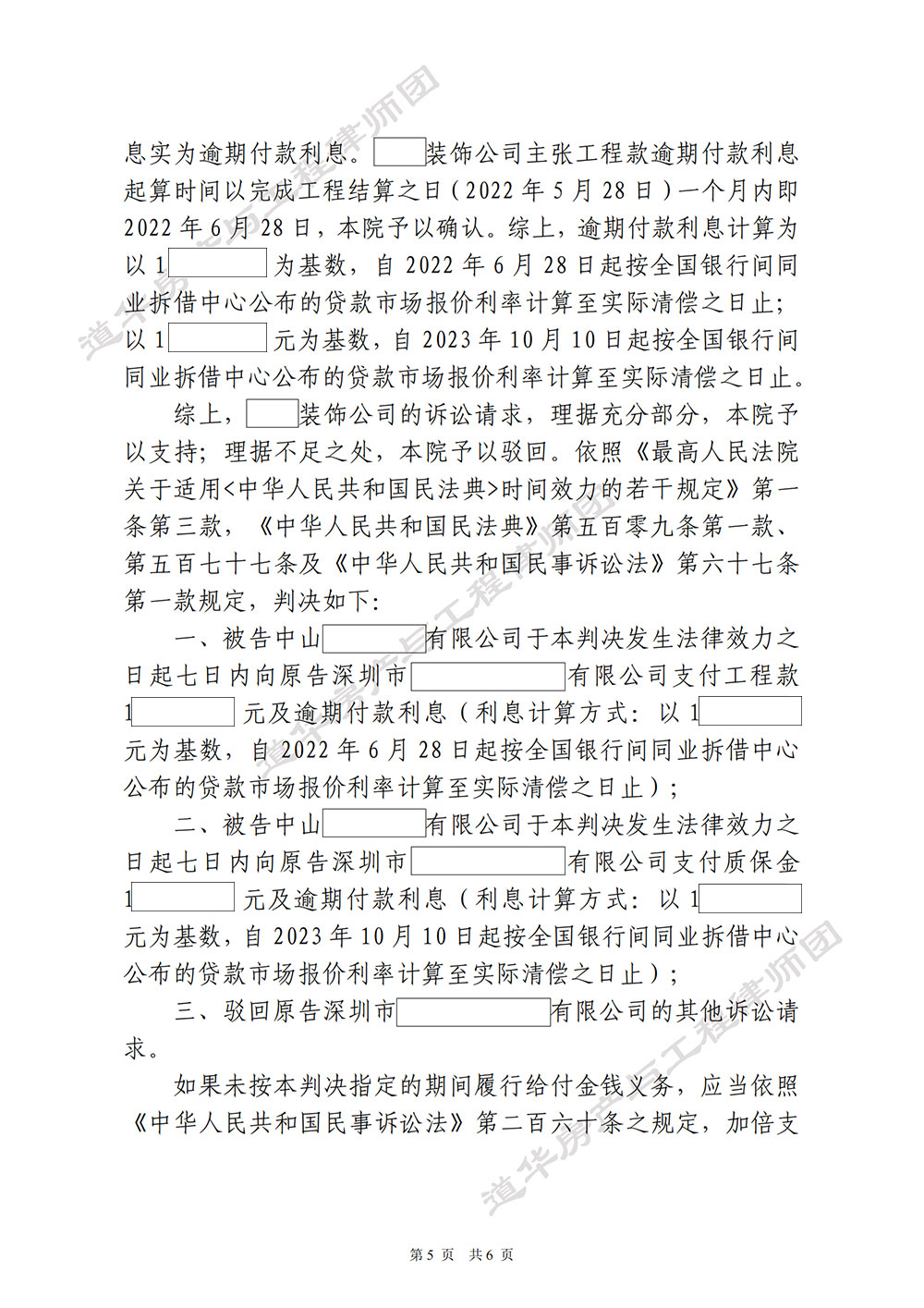 中山写字楼装修项目,道华工程律师团成功在无需鉴定的情况下获得法院支持工程款