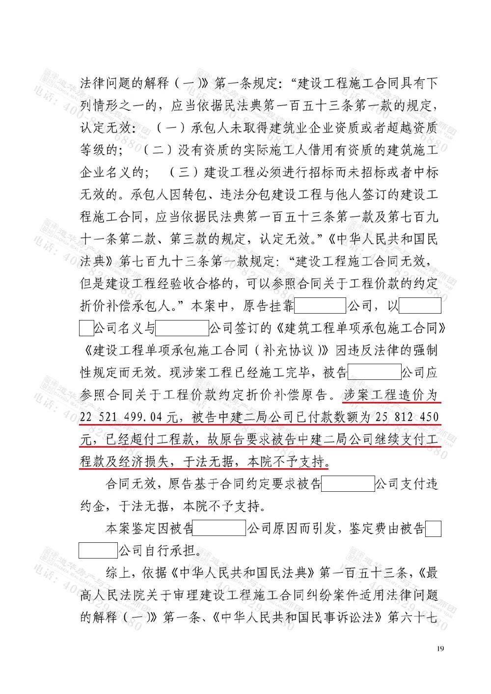 5、《中华人民共和国民法典》 第七百九十三条第一款规定,建设工程施工合同无效,但是建 设工程经验收合格的,可以参照合同关于工程价款的约定折价补 偿承包人。