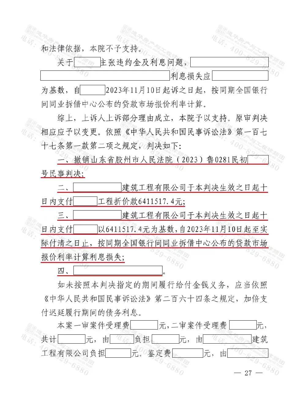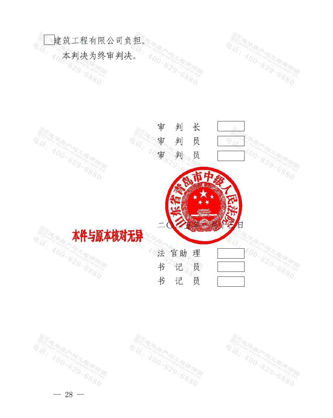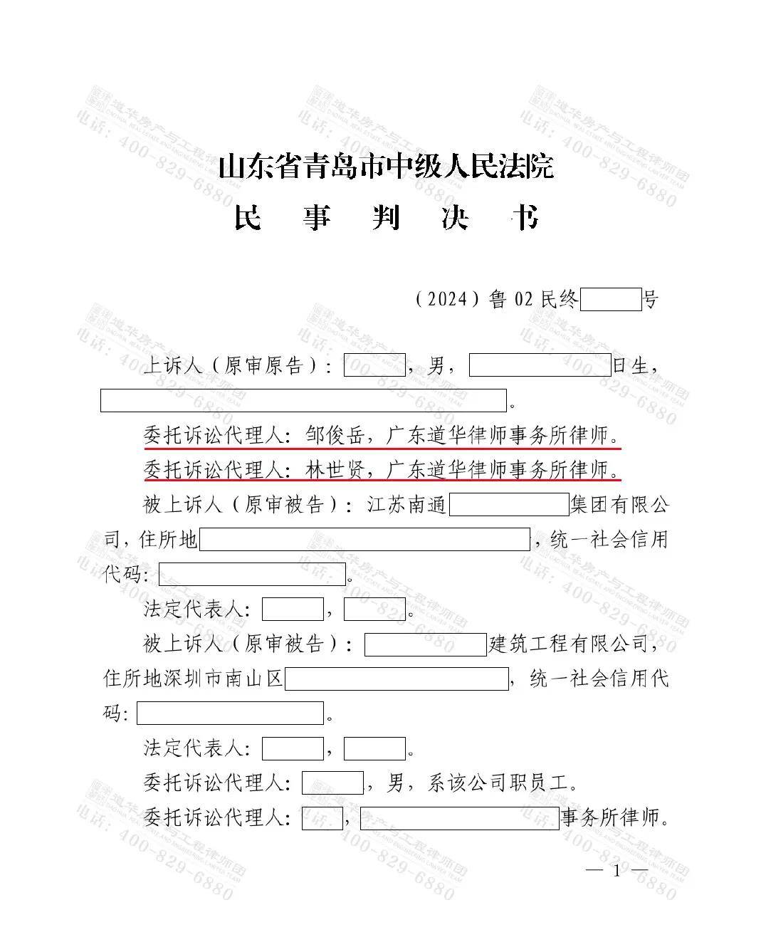 山东青岛装修工程,国企总包十年不结算,邹俊岳律师二审成功改判,全面胜诉,追回工程款970万元