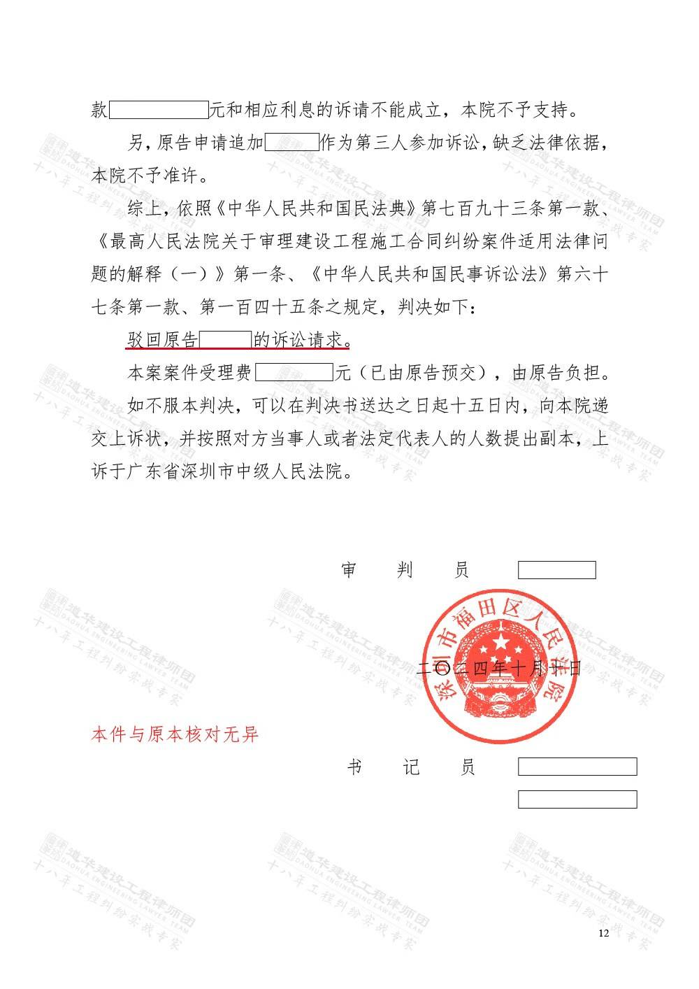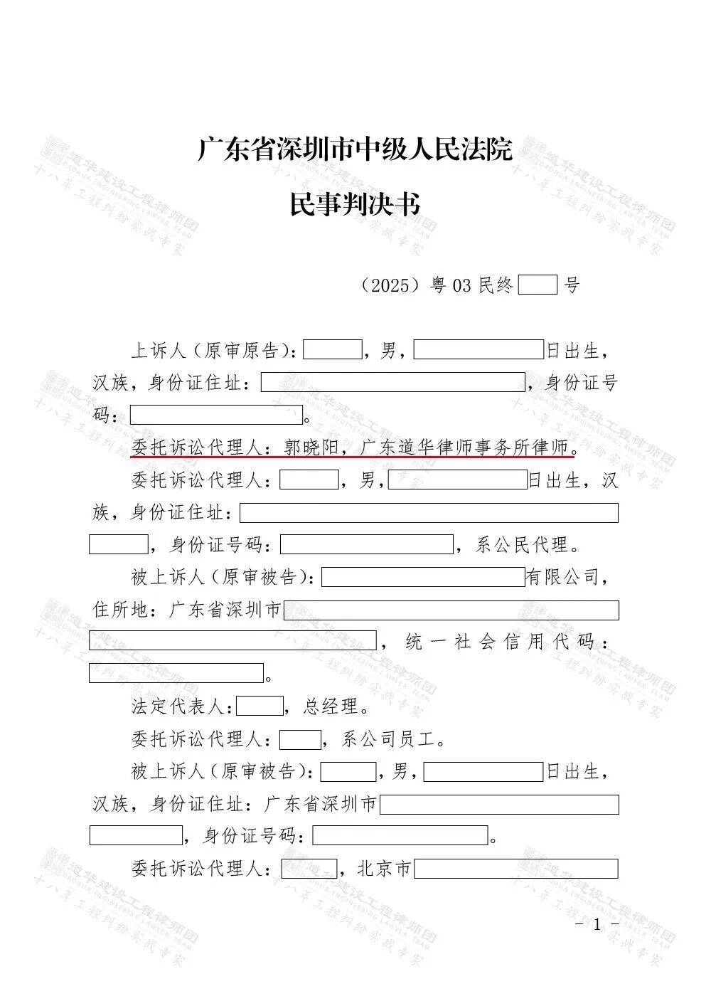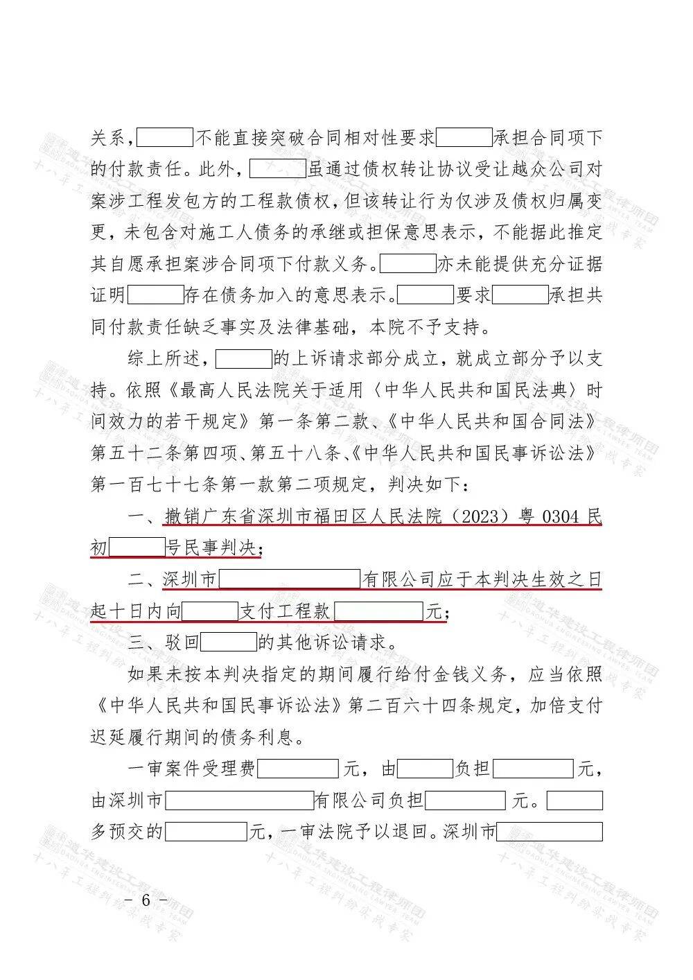 深圳福田钢结构工程,总包欠工程款项近十六年,广东资深工程律师代理二审,成功改判总包付款